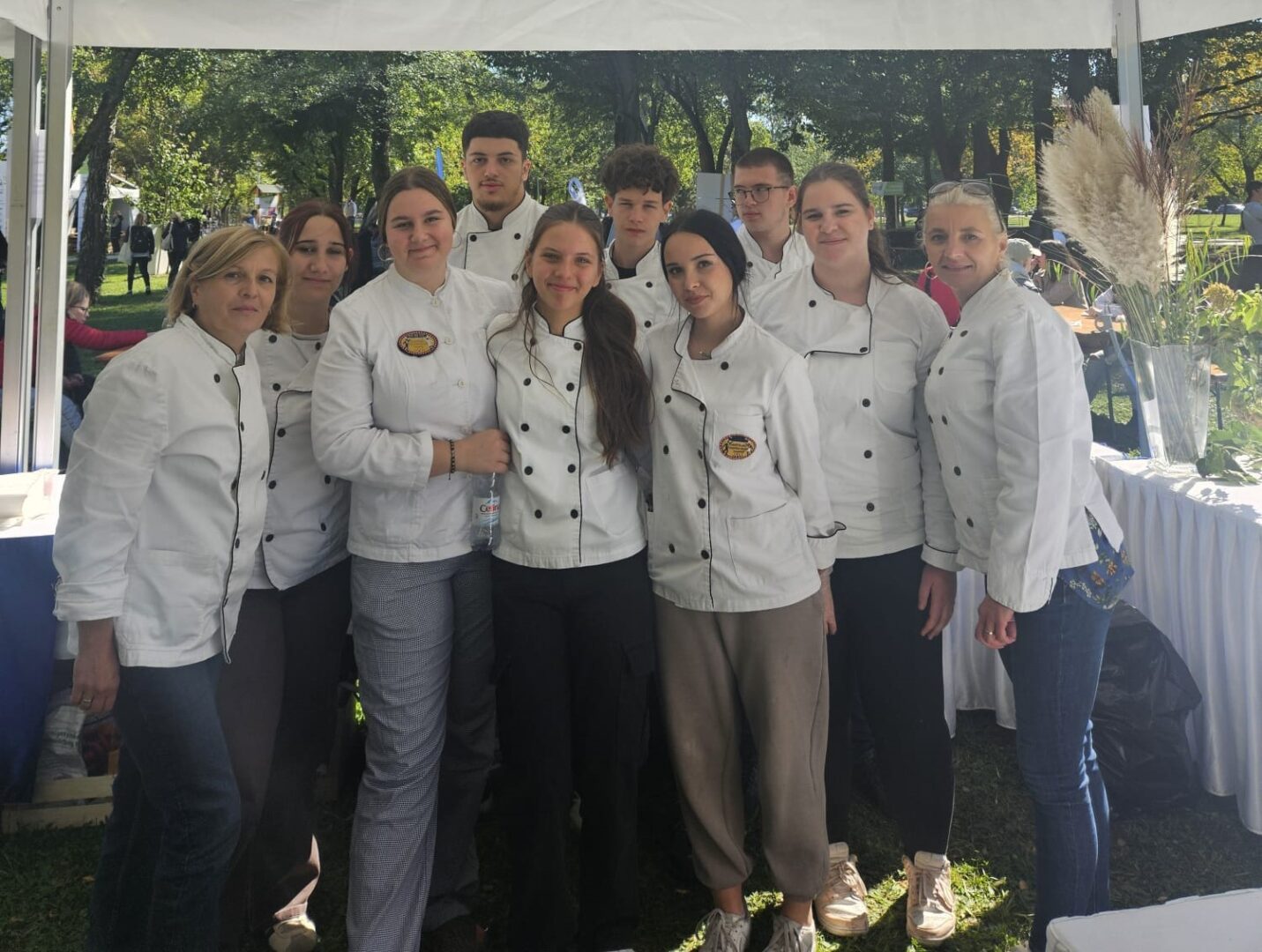 Pod vodstvom mentorica Ivanke Cerovšek i Ljubice Samardžije, učenici naše škole aktivno su sudjelovali u kulinarskom dijelu programa. Na školskom štandu predstavili su raznovrsne slasne delicije pripremljene od lokalnih i sezonskih namirnica, s naglaskom na održivost i smanjenje otpada u ugostiteljstvu.